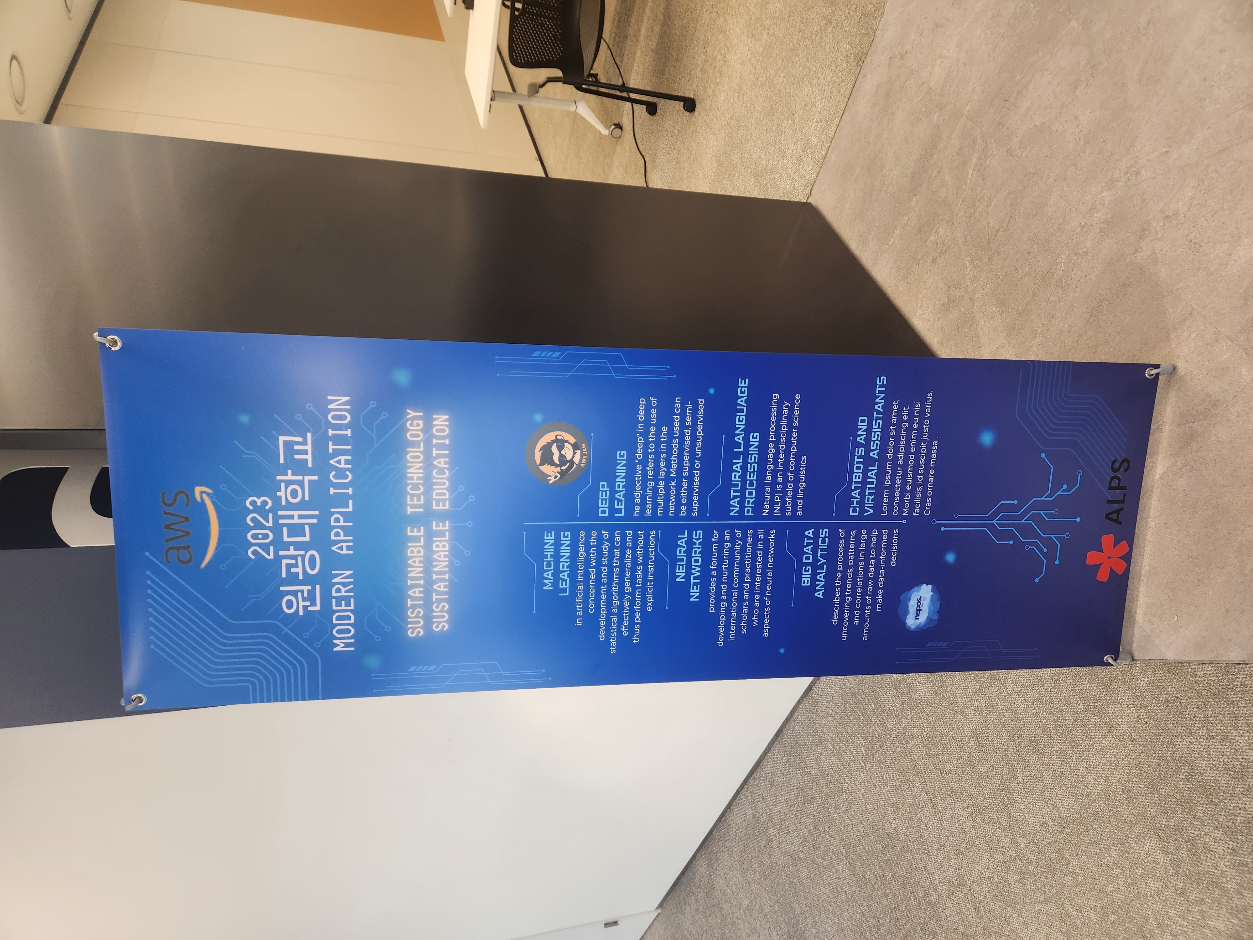 원광대학교 모던 애플리케이션 교육 현장이에요. 이틀 동안 강의를 들을 강의실이었어요.