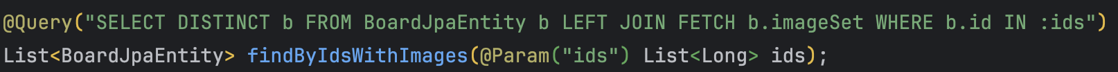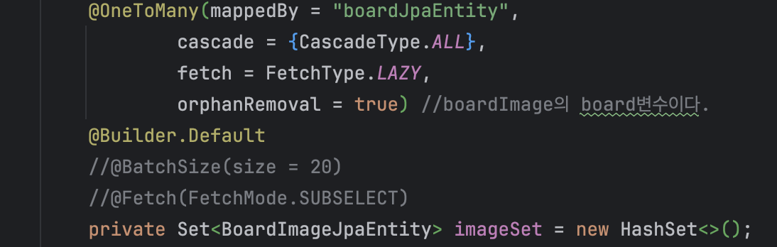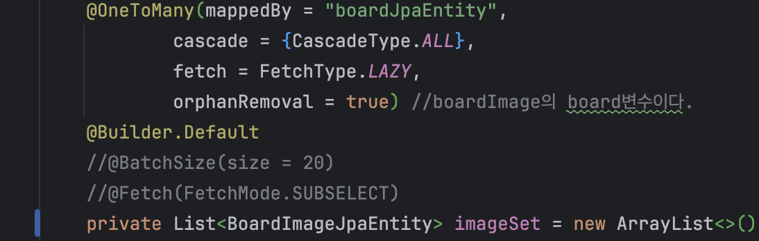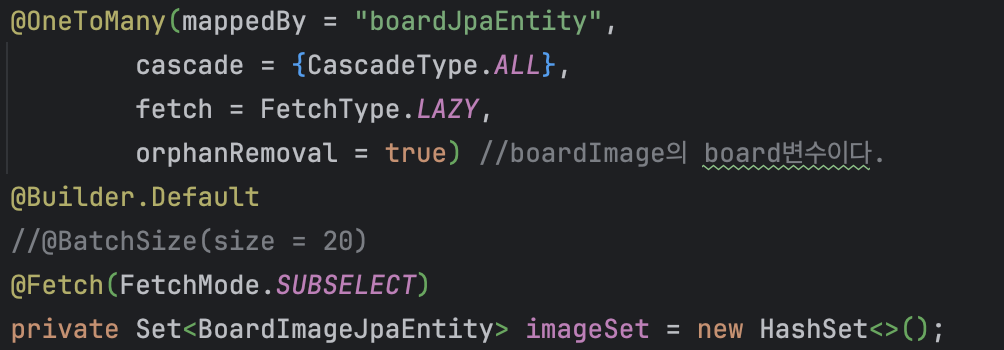 imageSet에 접근하면서board_image테이블을 조회하는 쿼리 실행 - 2~3을 반복