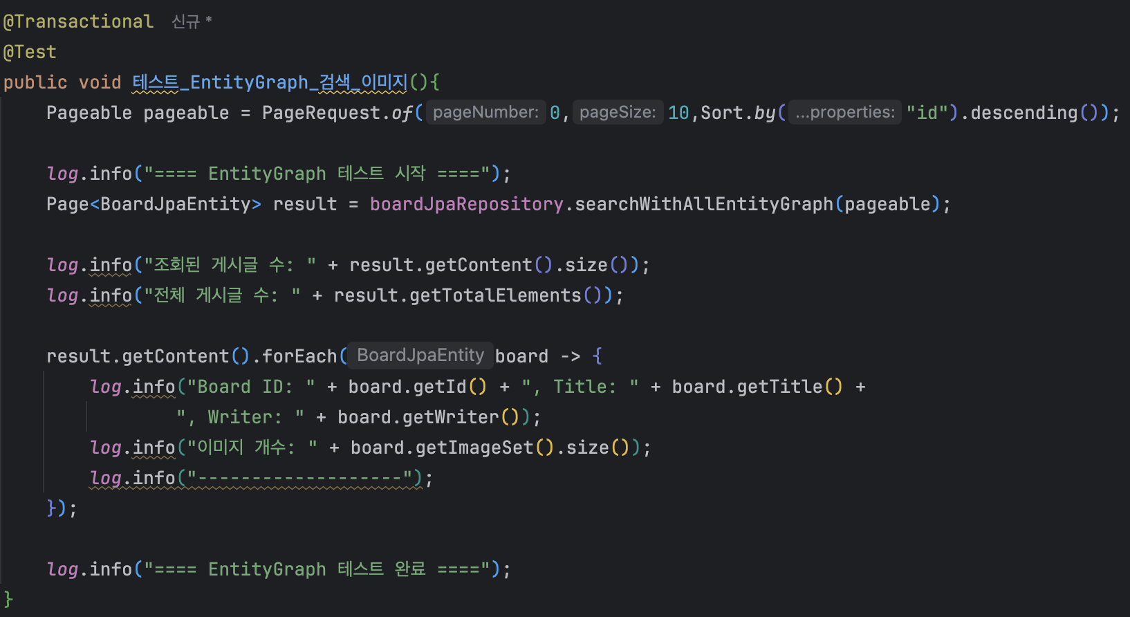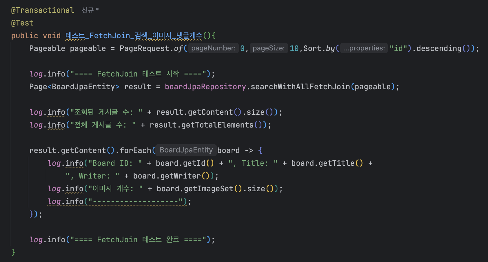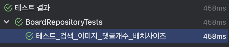 After inserting 100 dummy records and writing a unit test with Board and Reply left join, the page size was set to 10 and the test ran abnormally slowly.