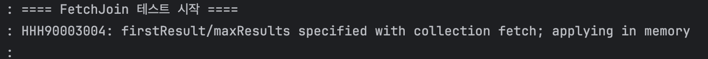 FetchJoin과 동일하게 메모리 페이징 경고가 발생했어요.