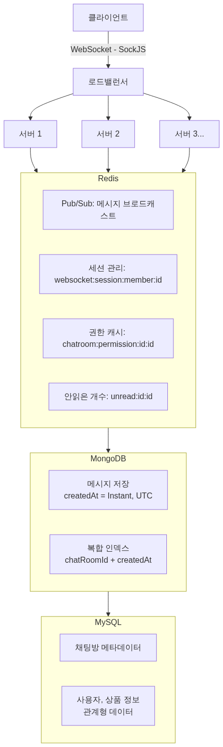 -> 모든 서버가 Redis Pub/Sub을 구독하므로 확장 가능 -> 각 서버가 자기에게 연결된 사용자에게만 실제 전송