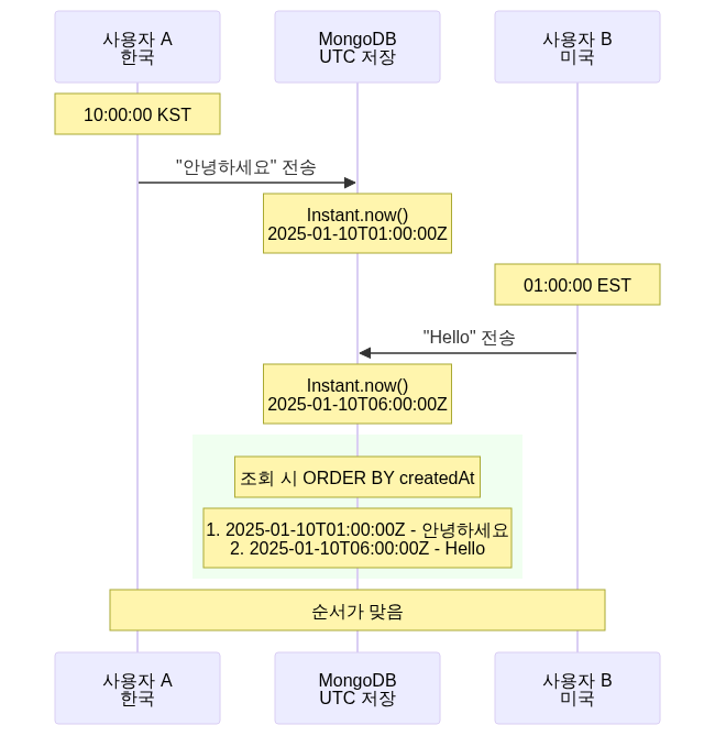 -> 같은 시각인데 시간이 다름 -> 메시지 순서가 엉킴