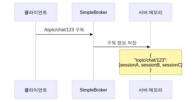 SimpleBroker는 구독 정보를 서버 메모리에 저장해요.