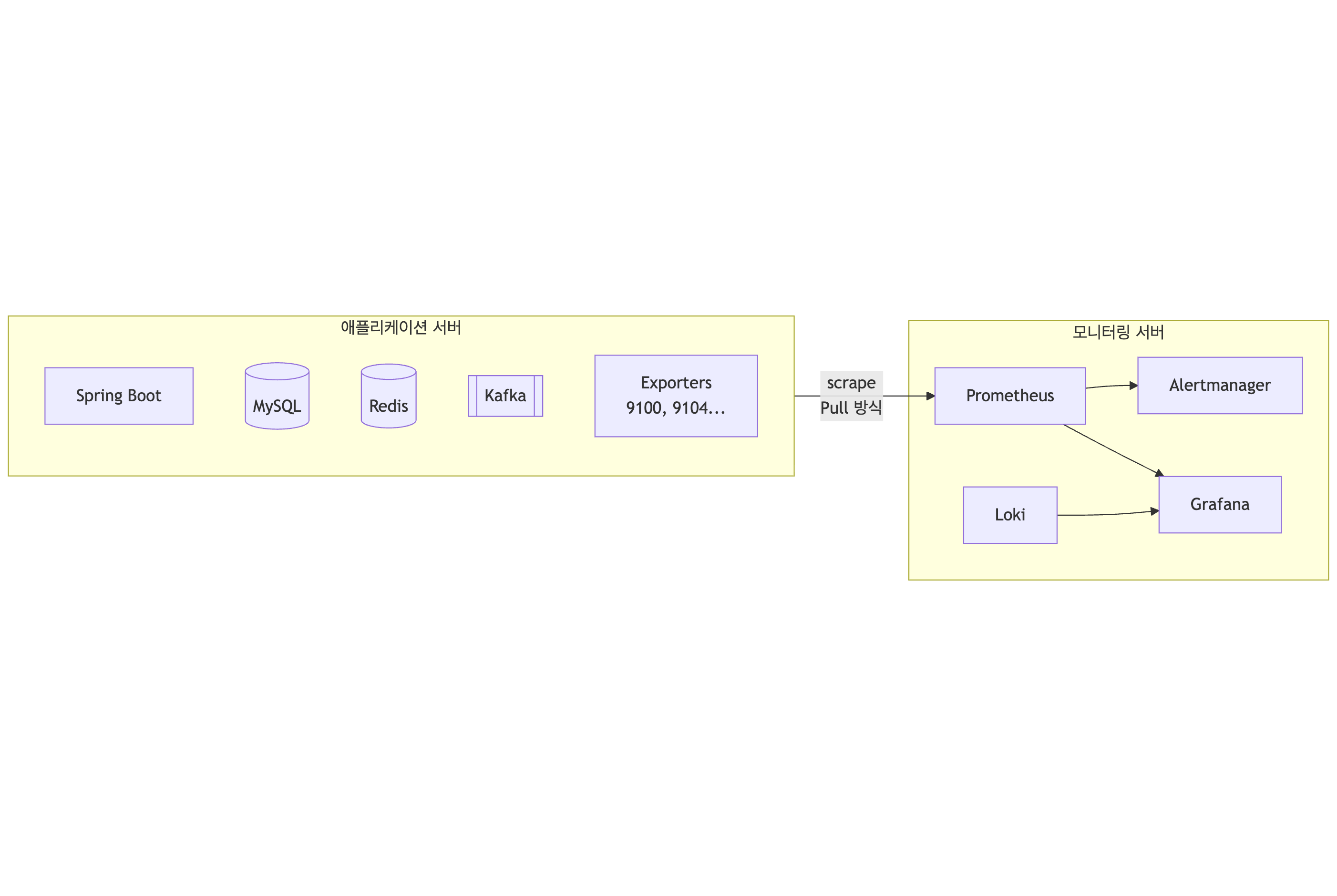 | Node Exporter | 9100 | 호스트 서버 | CPU, 메모리, 디스크, 네트워크 |