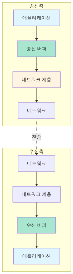 수신 버퍼는 네트워크에서 데이터가 도착하는 속도와 애플리케이션이 데이터를 읽는 속도의 차이를 흡수합니다.