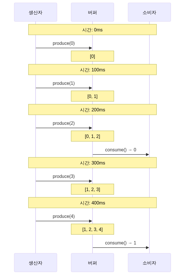 버퍼는 속도 차이가 있는 두 장치 사이에서 데이터를 임시 저장하는 공간이에요. 생산자(Producer)가 데이터를 생성하는 속도와 소비자(Consumer)가 데이터를 처리하는 속도가 다를 때, 그 차이를 완충합니다.