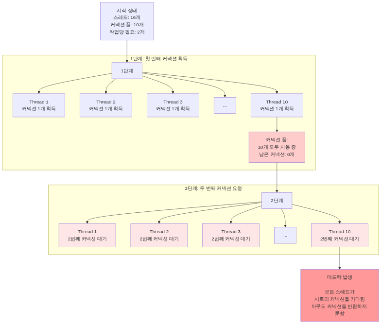 // 잘못된 방법: 메모리 낭비class MemoryWaste { void badApproach() { // 요청 1: 커넥션 풀 1개 (10개 커넥션) = 20MB HikariDataSource pool1 = new HikariDataSource(config);