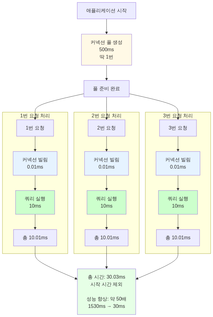 - 초기화 비용 절감: 풀 생성 시 모든 커넥션을 미리 만드는데, 이 과정을 한 번만 하면 돼요