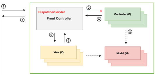 - Spring MVC: DispatcherServlet centrally dispatches requests