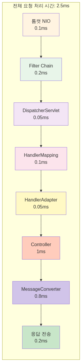 // Total time: 650ms// Spring MVC overhead: 2.5ms (0.4%)// Actual logic: 650ms (99.6%)Conclusion: Spring MVC itself is very fast. The bottleneck is almost always in the business logic.