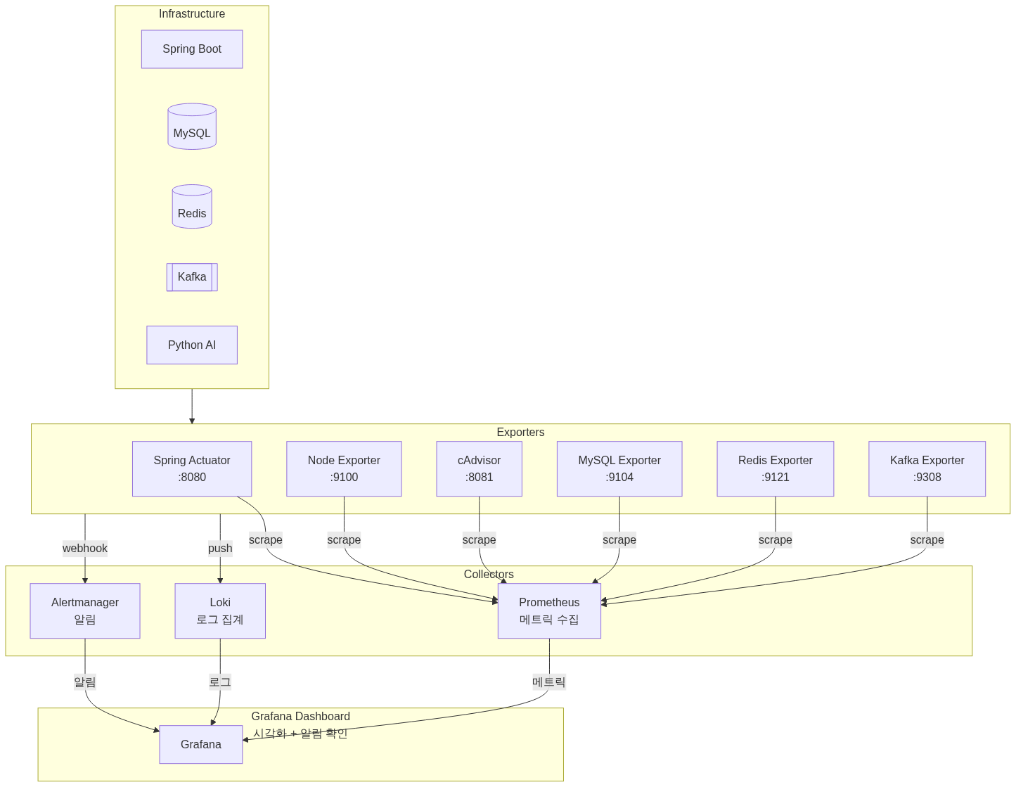 장애를 SSH로 확인하던 구조를 Prometheus(메트릭) + Loki(로그) + Grafana(시각화) + Alertmanager(알림)로 자동화해서 장애 감지를 30초 이내로 줄인 과정을 정리한다.