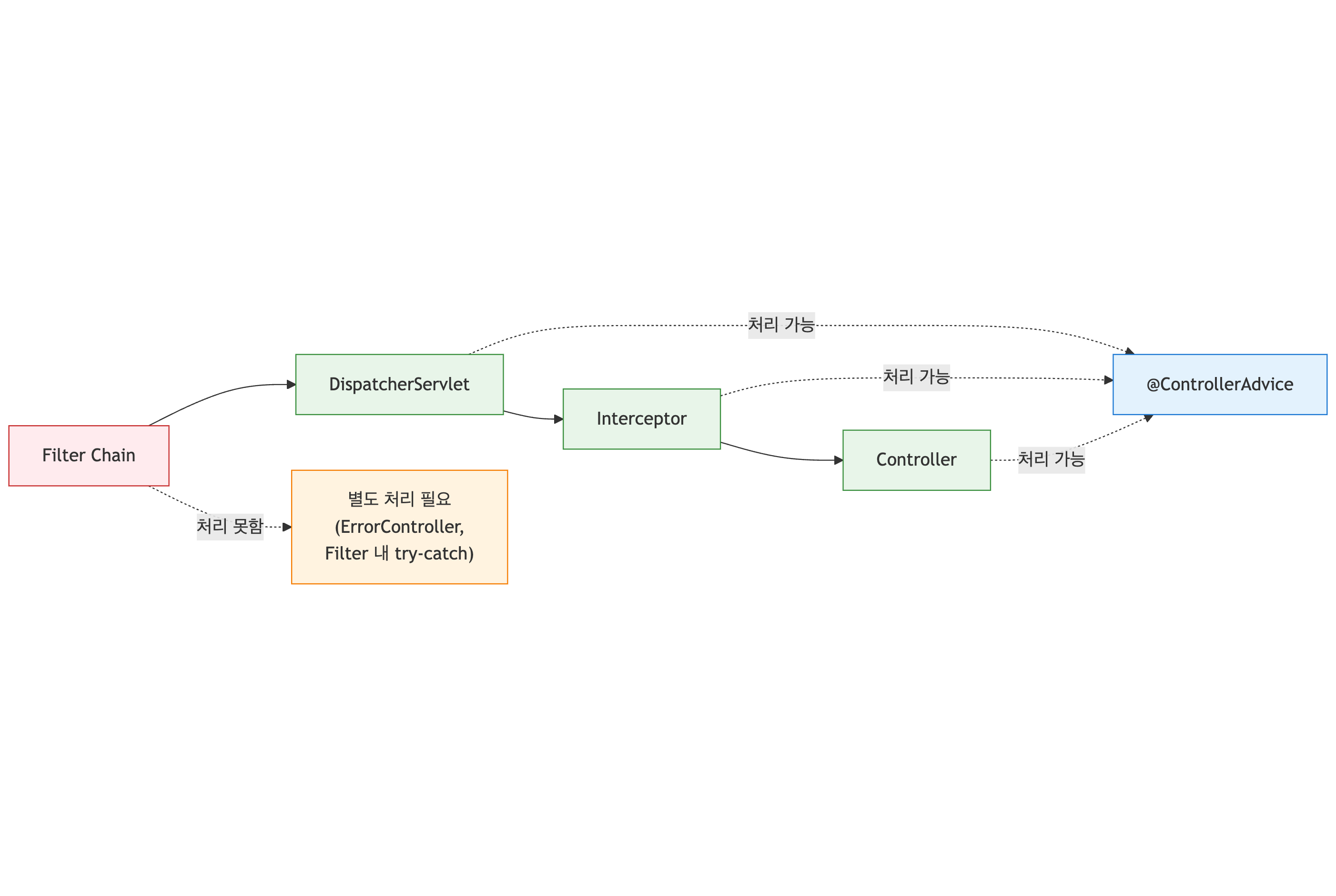 Spring의 여러 예외 처리 방법을 비교하고, @ControllerAdvice + 커스텀 에러 코드 + 통일된 응답 포맷을 선택한 이유를 정리한다.