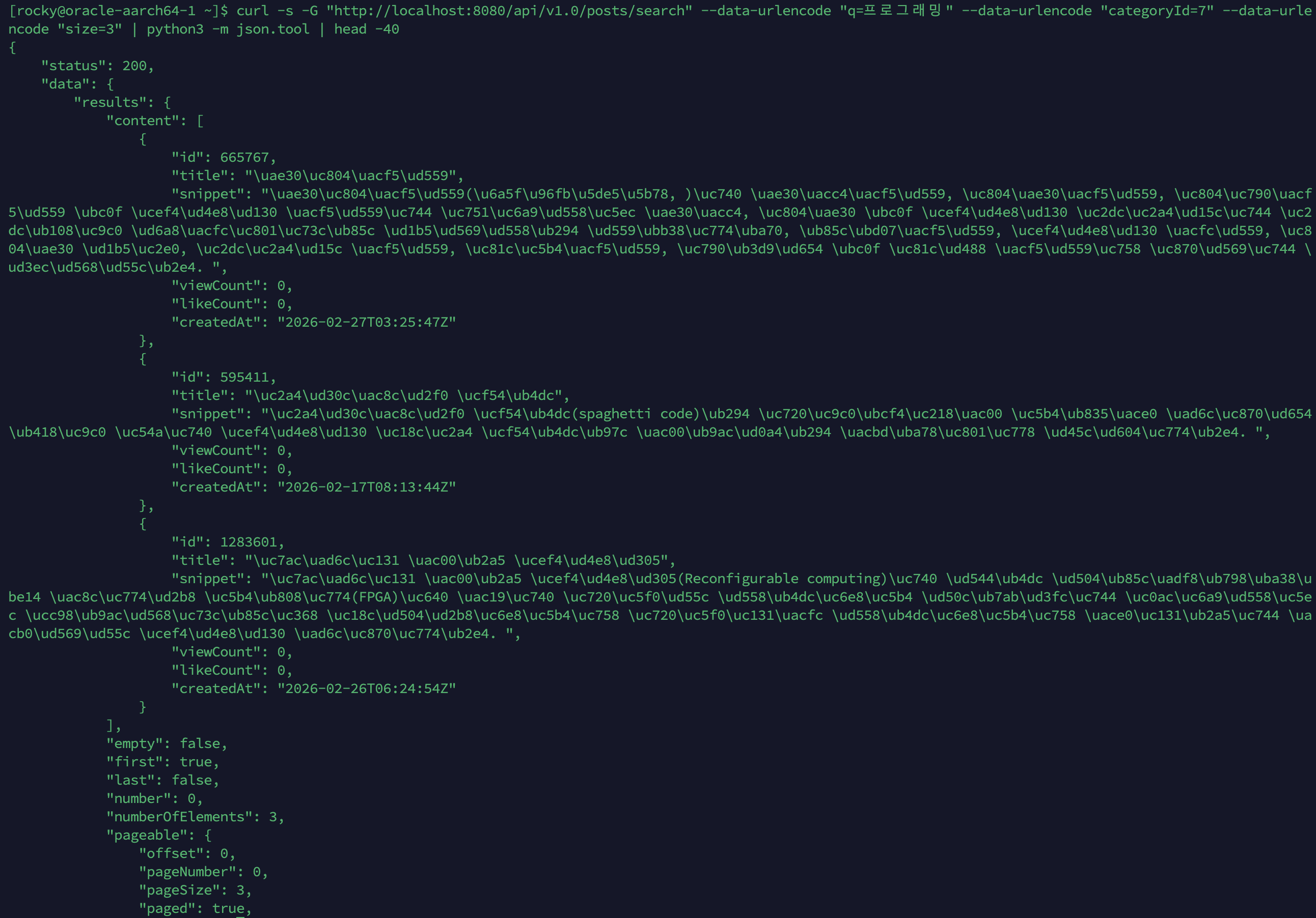 커뮤니티 검색 서비스의 운영 안전장치를 구축합니다. 16,090개 금칙어를 Aho-Corasick O(N+Z) 알고리즘으로 탐지하여 자동완성 결과에서 유해 검색어를 필터링하고, 블라인드 게시글을 Lucene Occur.MUST_NOT으로 검색에서 제외합니다. 영어 금칙어의 Scunthorpe 문제(단어 경계 매칭), Negative Caching(빈 결과 30초 TTL)으로 cache penetration 방지, title_raw StringField로 자동완성 Lucene fallback 품질을 개선합니다.